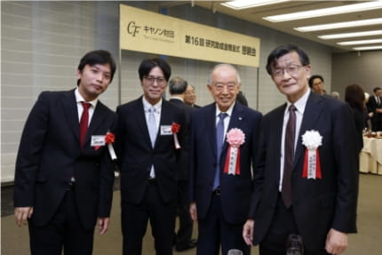 4月18日、東京・千代田区の経団連会館において、キヤノン財団の第16回研究助成金贈呈式が行われました。研究助成先に決定した15名に対し、同財団の評議員会議長であるキヤノンInc.御手洗冨士夫会長から研究助成金贈呈証が授与されました。