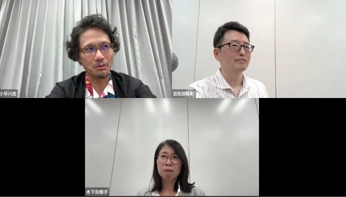 講演の最後では、曽我部 隆彰氏がコーディネーターとなり、パネルディスカッションが行われました。パネルディスカッションでは、チャットで届いた聴講者からの質問について講演者が回答しました。全てに回答できないほど多くの質問をいただきました。最後に各講演者は「分野にこだわらず、自分が面白いと思ったことを片っ端から楽しんでください」「研究をするのは明らかに大変ですが、その世界に飛び込む以上はどんどん挑戦して、我々を超えるインパクトのある研究をしてください」「どんな研究よりも素晴らしいアイデアをひねり出していただき、ぜひ日本の研究を引っ張ってほしい」等、これからの日本の科学技術を担う若い世代の方へ向け熱いメッセージを贈りました。